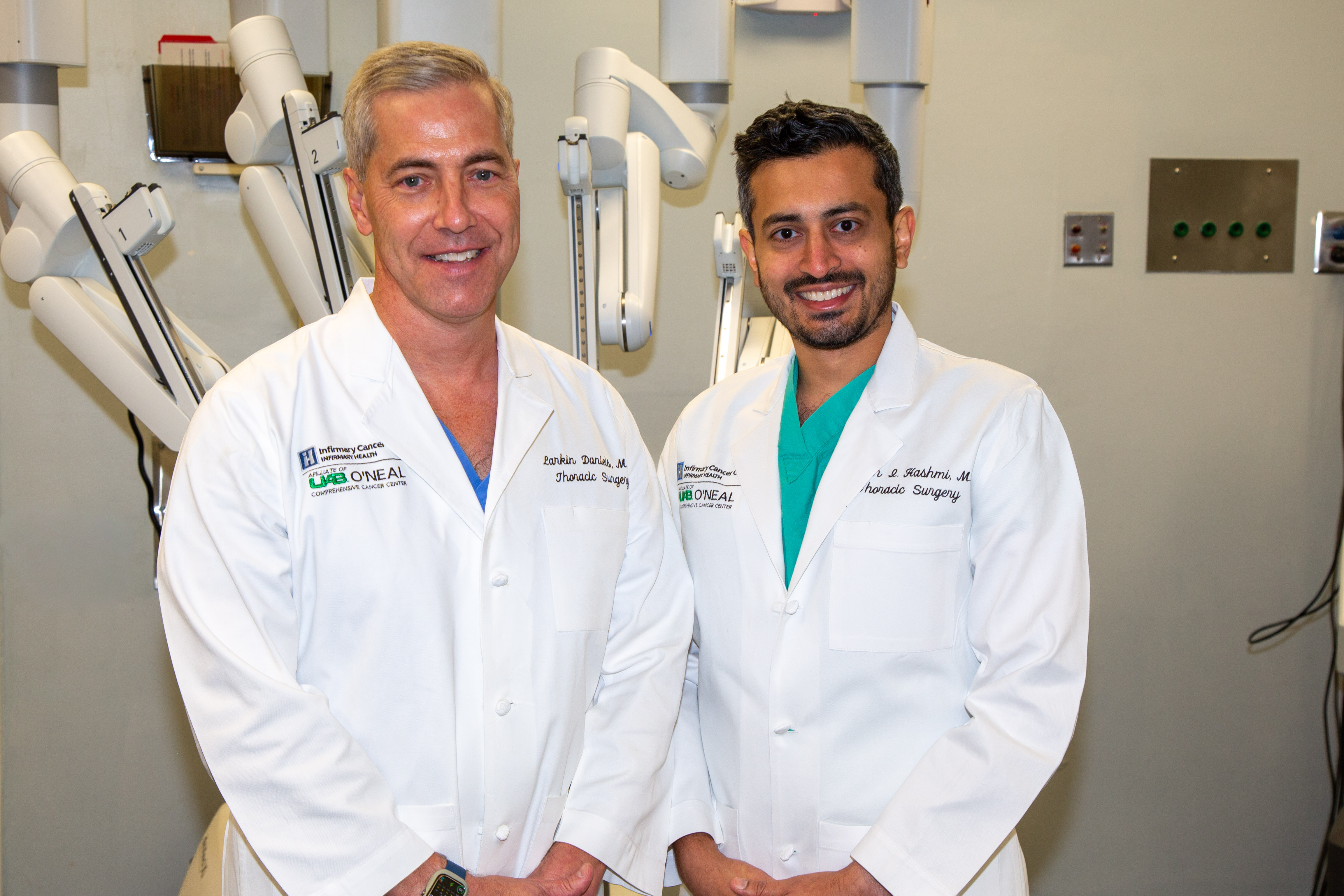 He is joined by Dr. Osman Hashmi, a fellowship-trained cardiothoracic surgeon and graduate of the University of South Alabama College of Medicine. Dr. Hashmi, who is fluent in five languages, completed his residency in general surgery at USA and earned recognition through the American Association for Thoracic Surgery Thoracic Surgical Robotics Fellowship. Together, Dr. Daniels and Dr. Hashmi form the leadership core of Mobile Infirmary’s thoracic surgery team.